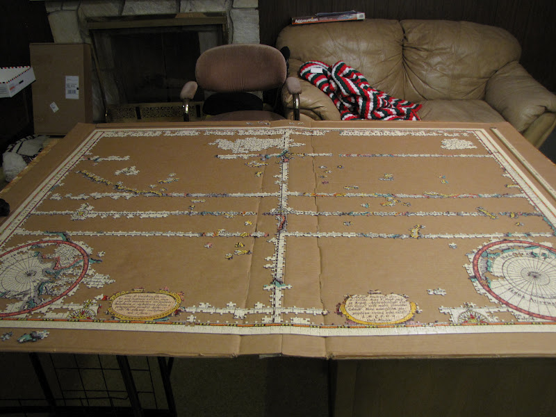 Hooray for progress! Boo for taking well beyond a year past birth to get anywhere close to completing our "pregnancy" puzzle. Sigh. Ideally, we'll have this puzzle assembled and glued by the end of October. We gladly welcome donations of time, assistance, and magic genie wishes to aid us in reaching our self-imposed deadline.