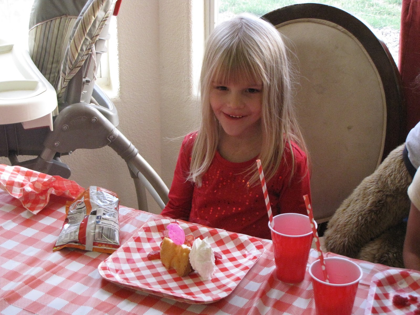 Megan invited six friends, because she turned six years old. Conveniently, she asked to invite three pairs of sisters, and they were all able to come. Our theme was Teddy Bear Picnic.